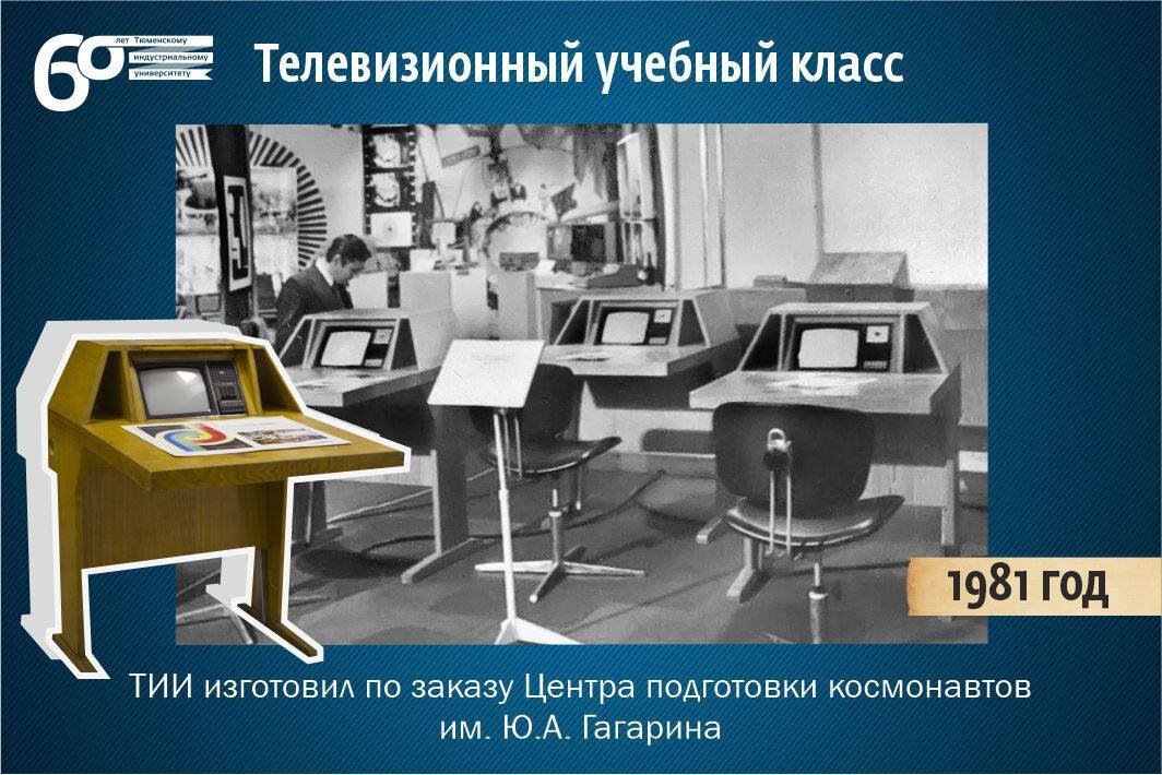 В то время телевидение в образовании было настоящим прорывом, и ТИУ стал одним из немногих вузов, кто взялся за реализацию такого проекта. Ученые университета разработали и создали уникальный учебный класс, где у каждого космонавта было своё рабочее место с вмонтированным телевизором для просмотра учебных фильмов и лекций. Этот вклад был отмечен Золотой медалью ВДНХ СССР!