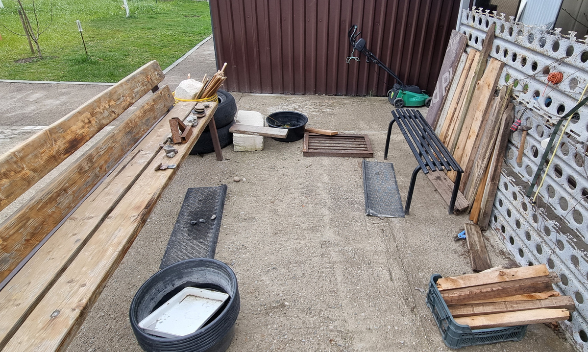 А это личная территория для нашего археолога-плюшкина-геолога))) Крышу сняли из-за сильного ветра. Нам с мужем такой "бардак" во дворе не нравится, но мы терпим🙈 Мы любимый идеальный порядок на участке, что бы нигде ничего не валялось, не портило вид, аккуратно стояло и т.д. Но на огороде в одном месте и возле нашей зоны отдыха вот такие вот места сейчас. Мы терпим. У меня терпения и понимания больше, чем у папы. Папа уже всё, на эти выходные попросил Фильку это всё убрать😁 Посмотрим, что из этого получится)))