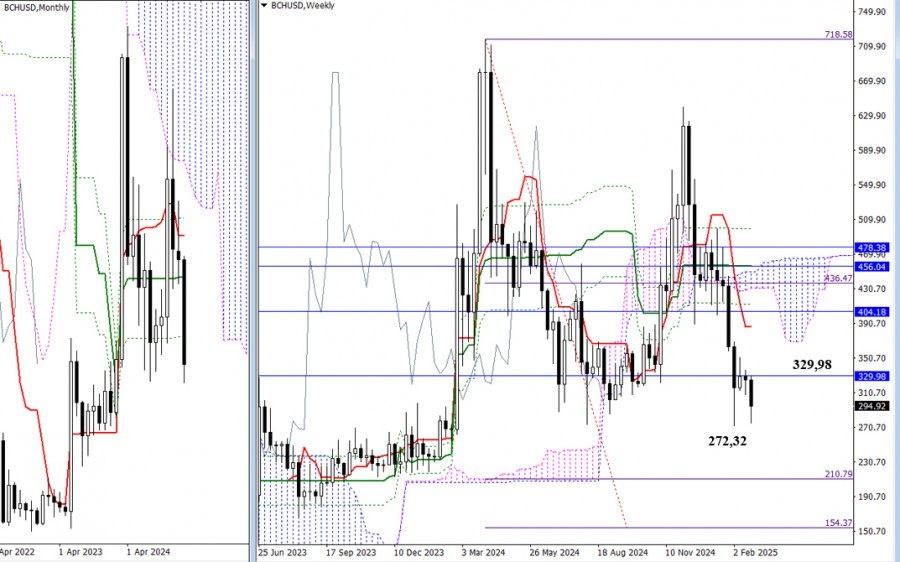 https://basechop.ru/wordpress/?p=38127 В настоящий момент игроки на повышение предпринимают попытку переломить ситуацию и остановить снижение. Если они сумеют закрепиться выше 329,98 – 334,57 (заключительный уровень месячного креста Ишимоку + недельный краткосрочный тренд), то шансы на изменение текущего положения значительно увеличатся и появится перспектива подъёма к другим ориентирам старших таймов, ближайшие сопротивления 369,09 и 404,18. Возврат на рынок медвежьей активности продолжит снижение к недельной цели на пробой облака Ишимоку (208,26 – 151,55). На дневном тайме полностью исполнена восходящая коррекция, и сейчас стоит вопрос о пробое дневного креста Ишимоку (311,43). Ликвидация креста позволит укрепить бычьи позиции, а пройденные уровни превратятся в поддержки. Следующими повышательными ориентирами в этом случае станут район 329,98 – 334,57, обозначенный выше, и дневное облако. Для игроков на понижение ближайшим ориентиром сейчас является обновление минимального экстремум