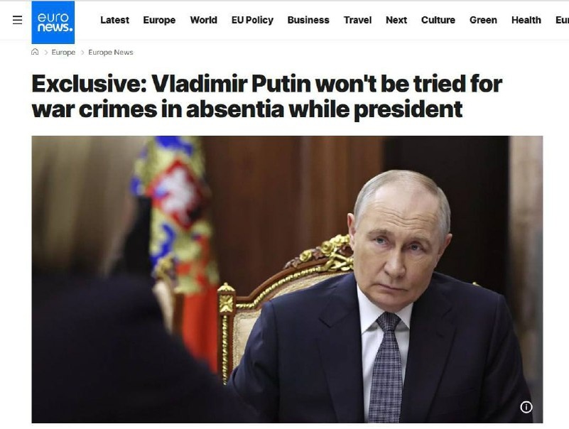 Трибунал в Гааге не будет судить Путина, пока он президент, а также Мишустина и Лаврова, сообщает Euronews со ссылкой на источники.