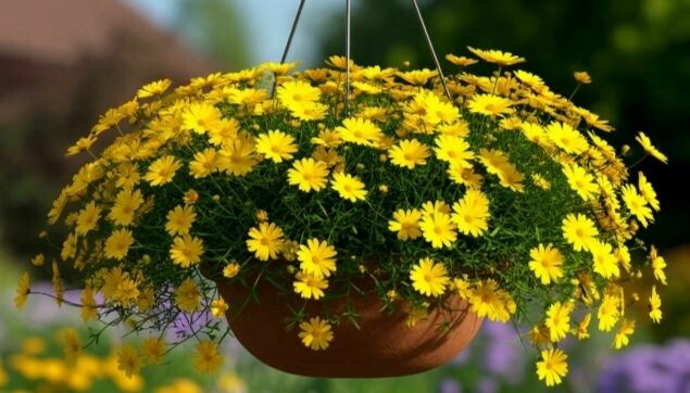 Вот такую красавицу для подвесных кашпо можно вырастить за один сезон из семян. Знакомьтесь-это тимофилла. Жёлтое облачко мелких цветочков свисающее из кашпо. Еще по другому ее называют ранней маргариткой. Цветочки ее не большие, ярко-жёлтые до 1 см в диаметре, но их очень много и при правильном уходе, а это своевременно убирать засохшие цветы, которые уже отцвели, тем самым вы продливаете пышное цветение тимофиллы. Цветок неприхотлив в уходе. Любит солнышко, так как и сам мини солнышко😉, поэтому размещают на самых солнечных безветренных местах. Я начинаю посадку в апреле т. к. ждала семена долго, и показываю вам все тонкости (по ссылочке👇) https://dzen.ru/video/watch/67f8ee2fa5809f47fed0f747