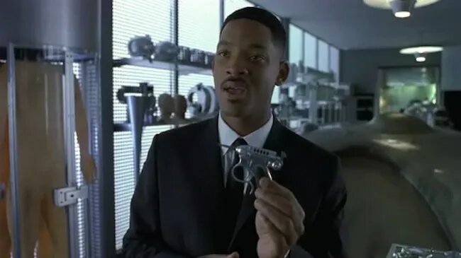 Маленький пистолет с тонким стволом из комедийного боевика «Люди в чёрном» — это настоящий обманщик. На вид он кажется игрушкой, но «Шумный Крикет» (Noisy Cricket) стреляет гигантскими энергетическими шарами, сопровождаемыми характерным звуком сверчка. Герой Уилла Смита, агент Джей, ненавидел это оружие из-за его кошмарной отдачи: несмотря на скромный размер, пистолет отбрасывает стрелка назад с силой крупнокалиберного ружья.