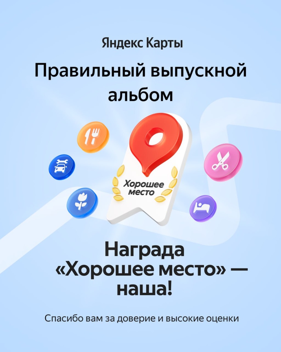 ❤️ы получили награду от ЯНДЕКС "Хорошее место". Награда выдаётся на основе сбора сведений от клиентов и их оценок сервиса. Спасибо вам большое за доверие! Всегда рады стараться быть лучше и стремимся к идеалу быть ЛУЧШИМИ на рынке!
