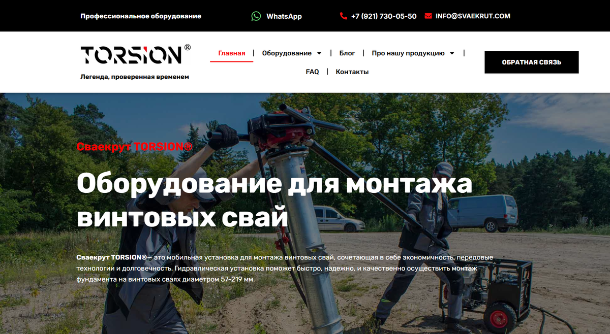 🔸разработка сайта-каталога для производителя гидравлического профессионального оборудования Torsion