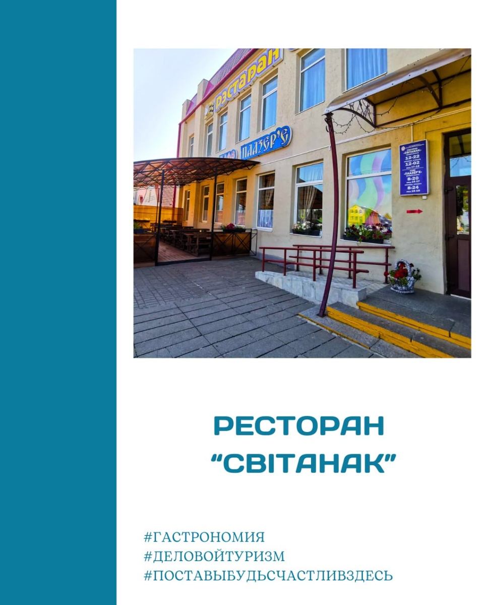 ☕️ Ресторан “Світанак” (первый класс) 🥘 Кухня: блюда национальной и европейской кухни 🥧 Ресторан предлагает комплексные обеды. 👨🍳 Два просторный зала: белорусский (50 человек); большой (70 человек). 🌀 Оба зала оснащены системой кондиционирования. 👔 Помещения подходят для организации семинаров, деловых обедов, презентаций. 🧳 Ресторан предоставляет услуги кейтеринга. 🕚 Время работы: 12:00 - 22:00 пятница, суббота 12:00 - 02:00 обед 17:00 - 19:00 🧭 Адрес: г. Поставы, пл. Ленина, д. 4 📞 Контактные данные: + 375 2155 5 27 59 Instagram: @svitanok2020 📌 GPS-координаты: 55.113164, 26.838871 #деловойтуризм #поставыбудьсчастливздесь #питание #гастрономическийтуризм #гастрономия #белорусскаякухня #кулинарнаяпоставщина #гастротуризм #гастробеларусь