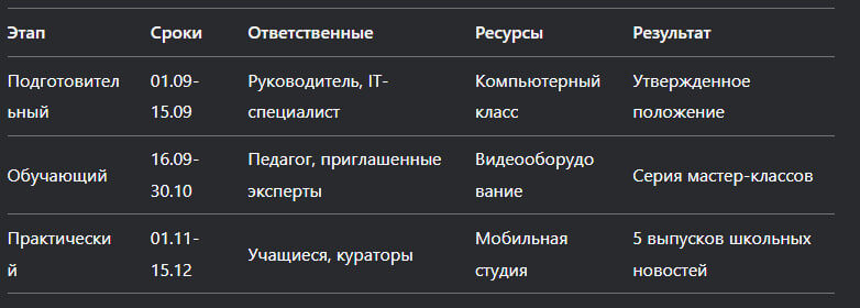 Современный образовательный процесс требует от педагога не только предметных знаний, но и навыков проектного менеджмента. Качественно разработанный проект позволяет: Выбор темы – отправная точка любого проекта. Рассмотрим критерии качественной тематики: Актуальность определяется через: Эффективные цели проекта строятся по принципу "перевернутого треугольника": Детализированная структура включает 3 ключевых блока: Содержательный блок: Организационный блок: Коммуникационный блок: Пример для проекта "Школьный медиацентр": Комплексный мониторинг включает: Количественные показатели: Качественные показатели: Разработка образовательного проекта – это динамичный процесс, требующий: Профессиональный совет: Начните с цифрового прототипирования – создайте "скелет" проекта в Miro или Notion, который будет развиваться вместе с вашей задумкой. [✓] Тема соответствует образовательным стандартам