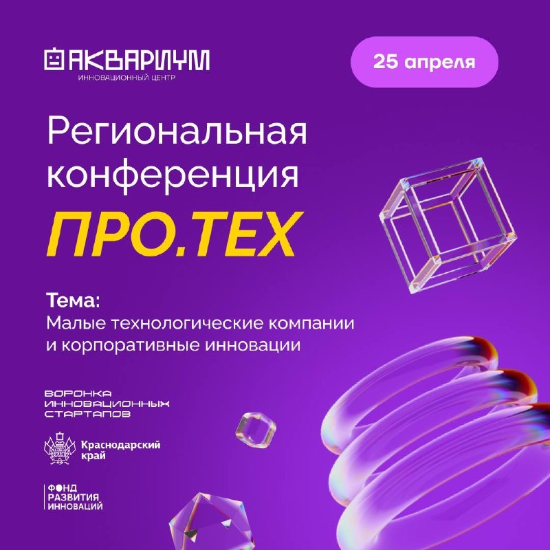 😑 ПРО.ТЕХ возвращается Открыта регистрация на шестую региональную конференцию ПРО.ТЕХ 🚀 Все о малых технологических компаниях и корпоративных инновациях. Узнаете, как технологии помогают бизнесу сокращать издержки, находить точки роста и запускать настоящий тех-прорыв. 🔥6 секций, темы от науки и бизнеса до городской среды, АПК, медицины, туризма и промышленности. 💥 Экспертная сессия и реальные кейсы. На конференции компании озвучат свои технологические запросы, а вы узнаете, какие решения будут востребованы рынком в ближайшие годы. 📥 25 апреля, пятница, 10:00 📌 ИЦ «Аквариум» Регистрация и полная информация о программе по ссылке 🔗 Мероприятие проводится Фондом развития инноваций Краснодарского края при поддержке регионального департамента развития бизнеса и внешнеэкономической деятельности. Партнёр-оператор — АНО Иннокуб. Присоединяйтесь к тем, кто двигает технологии в регионе😎