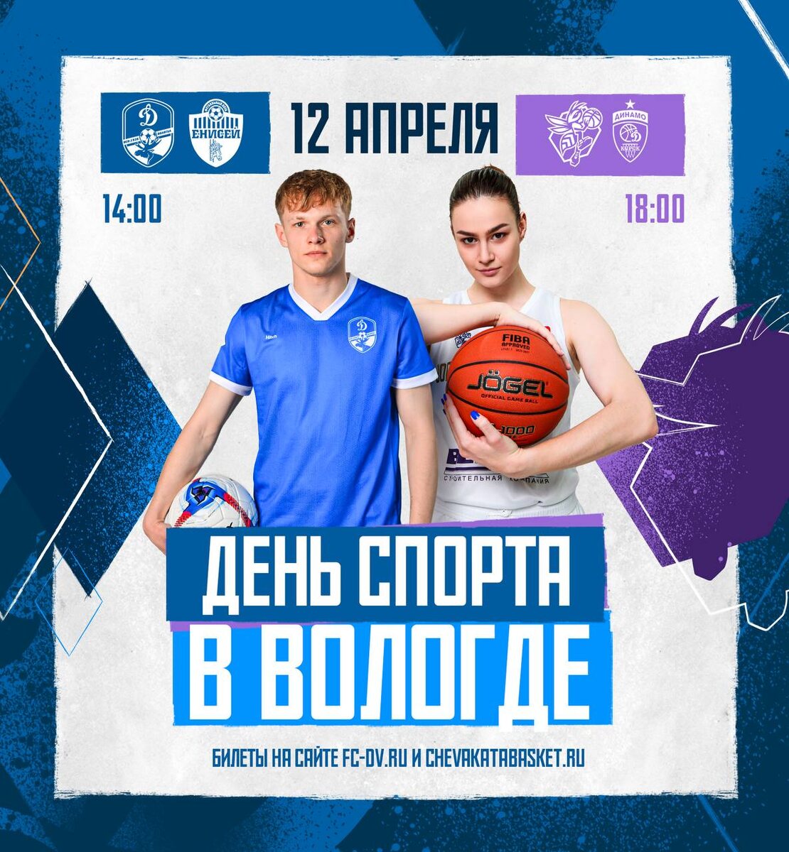 ⚡День большого спорта в Вологде! 12 апреля любимые команды вологжан вновь проведут важнейшие игры в один день! 😍 В 14:00 приглашаем всех на футбольное противостояние с «Енисеем-2» (Красноярск), а в 18:00 — матч плей-офф 1/2 финала женской баскетбольной Суперлиги, где «Чеваката» (Вологда) встретится «Динамо-ФАРМ» (Курск). ⚽Билеты на футбол: clck.ru/3JT6dr 🏀Билеты на баскетбол: clck.ru/3Kw6Z9 Проведи эту субботу максимально ярко! 😉 @dynamovologda