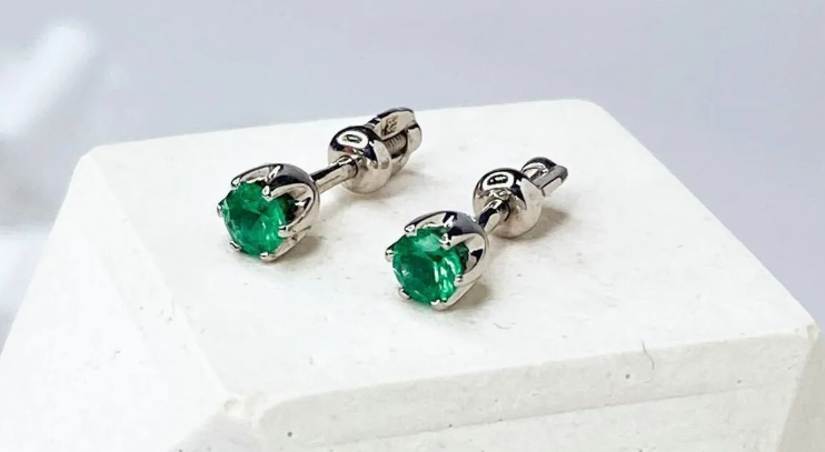 Изделия выполнены из белого золота 585 пробы. В центре каждой сережки – ярко-зеленый облагороженный изумруд, который завораживает своей красотой и глубиной оттенка. Травяной оттенок в украшениях дарит спокойствие, наполняет позитивной энергией и заряжает хорошим настроением. Такие украшения легко вписываются в праздничные и повседневные образы.