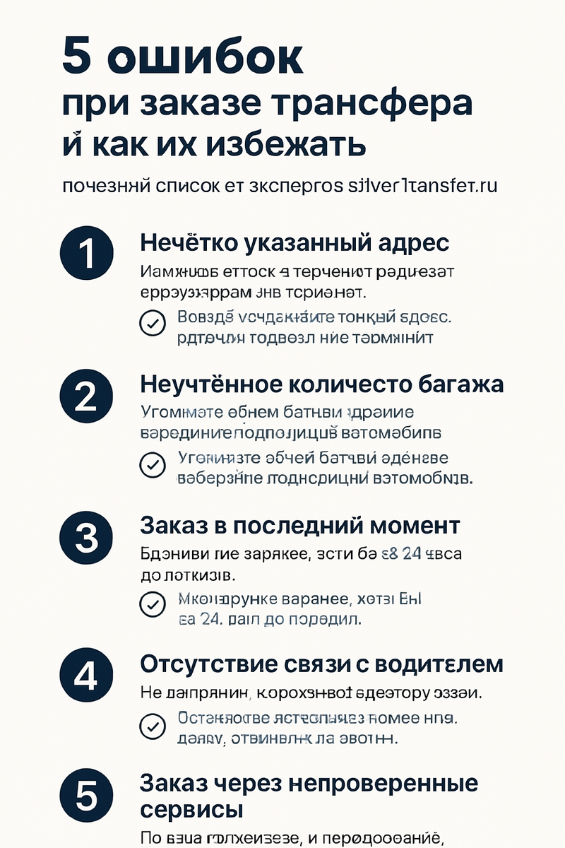 Планируете путешествие или деловую поездку? Заказ трансфера — это отличный способ начать путь без стресса и суеты. Но чтобы поездка прошла на высшем уровне, важно учитывать нюансы. Команда SilverTransfer.ru делится полезными советами, которые помогут вам избежать неприятных моментов и сделать поездку максимально комфортной. Кажется очевидным, но именно из-за неточностей в деталях чаще всего случаются задержки и путаница. ❗ Почему это важно: