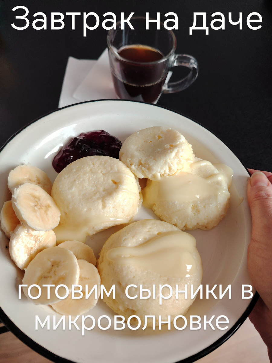 Очень захотелось быстрого завтрака, в холодильнике есть пачка творога, но просто так - это не интересно)). Я сейчас на даче, тут нет духовки, и выбор между сковородкой и микроволновой печью. Можно было написать "творожная запеканка", потому что это печётся, а не жарится, и наверно можно сделать в широкой неглубокой форме,в идеале силиконовой. Но у меня в арсенале только тарелки и разные чашки-кружки. Решила использовать маленькие чашки. Но всё по порядку: берём творог, яйцо, сахар, соль, сметану, муку. Все смешиваем. Должна получиться однородная не жидкая смесь. Чашки я смазала небольшим количеством подсолнечного масла. В каждую кладём по столовой ложке творожной смеси. Ставим в микроволновку на 4 минуты при мощности 800. Достаем и перекладываем в тарелочку, украшаем и завтракаем с удовольствием! По вкусу эти "ленивые" сырники очень напоминают классические ленивые вареники. Приятного аппетита! Попробуйте приготовить, это действительно вкусно и быстро!