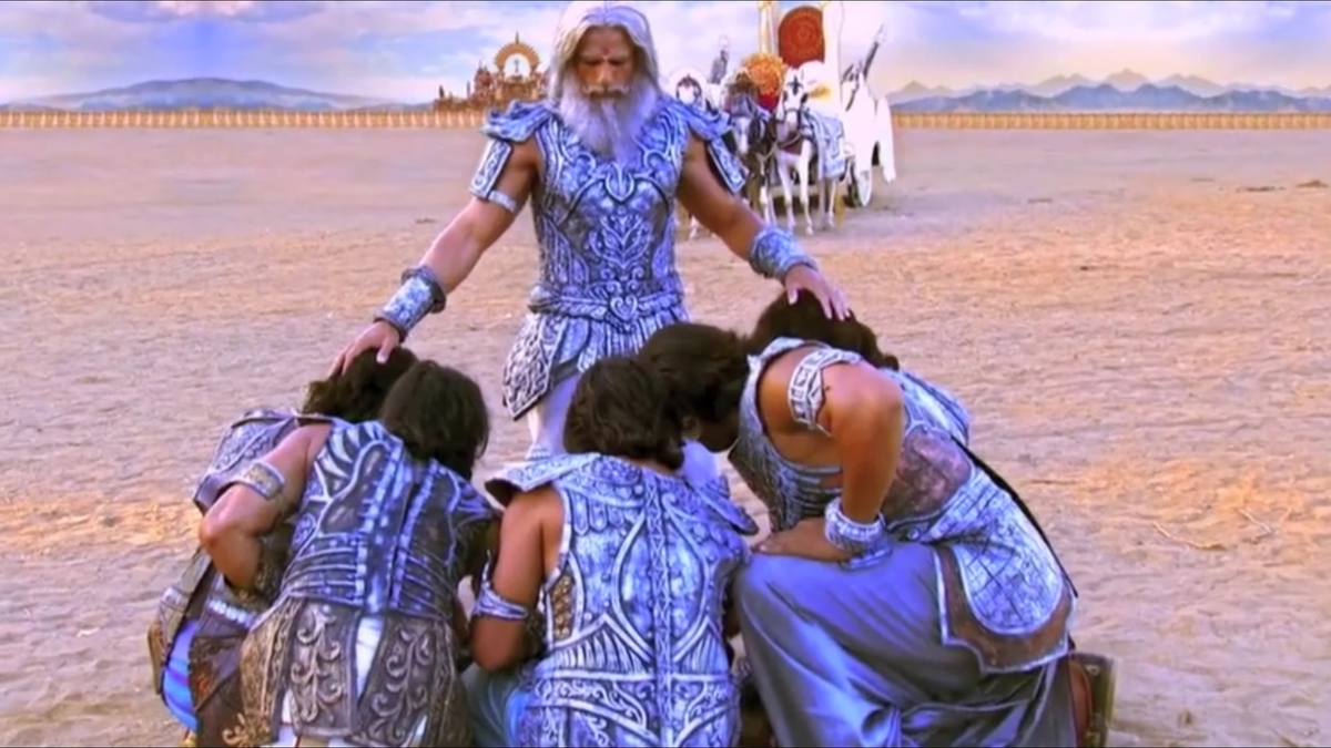 Дурьодхана заметил, что Бхишма на его стороне, на стороне зла, потому что он дал обет поддерживать на троне любого, кто займет престол. И Дурьодхана – исчадие зла, занял престол. А на самом деле, Бхишма любит Пандавов, он любит всем сердцем Арджуну, Юдиштхиру, Бхиму, Накулу и Сахадева – пятерых братьев-праведников. А теперь, во время битвы, он должен сражаться с ними, убить их, потому что дал обет, это воинская честь, закон.