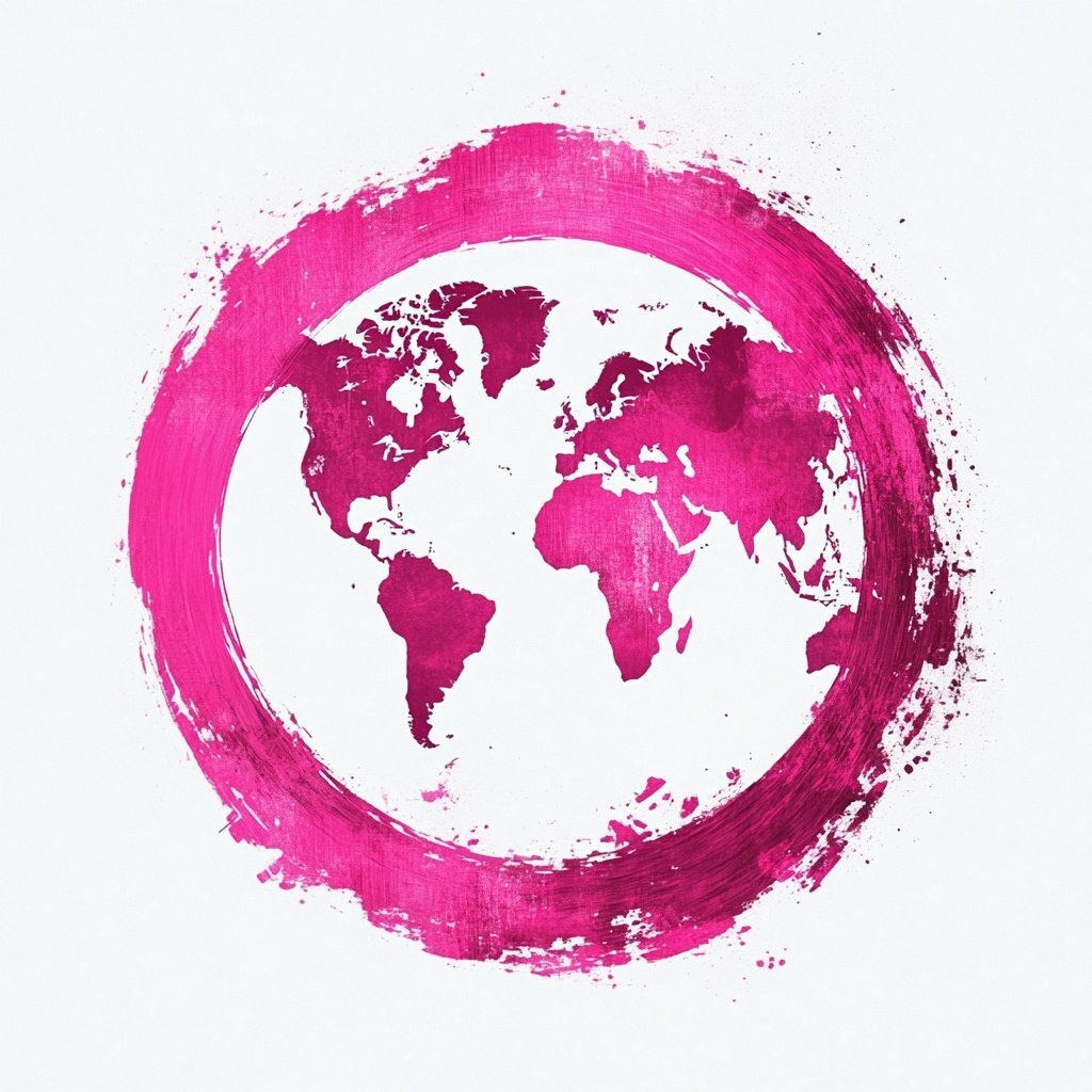 Создано на основе запроса: illustration of the world as a circle, magenta, white background