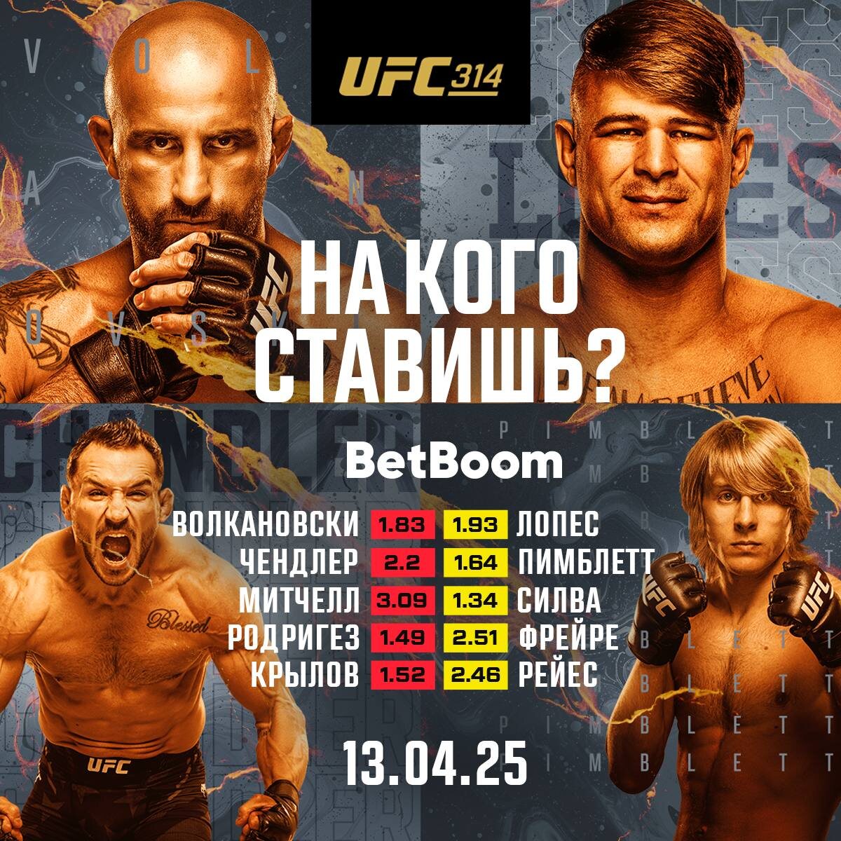 🤩 Ставь на интригующие бои #UFC314 вместе с BetBoom по промокоду UFC1000