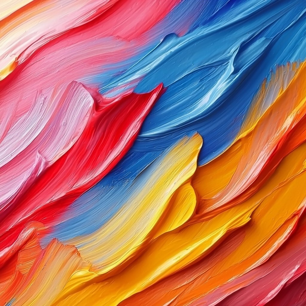 Создано на основе запроса: Close-up of a colorful abstract background with smooth blending of bright red, yellow, and blue paint strokes, soft light creating dynamic shadows.