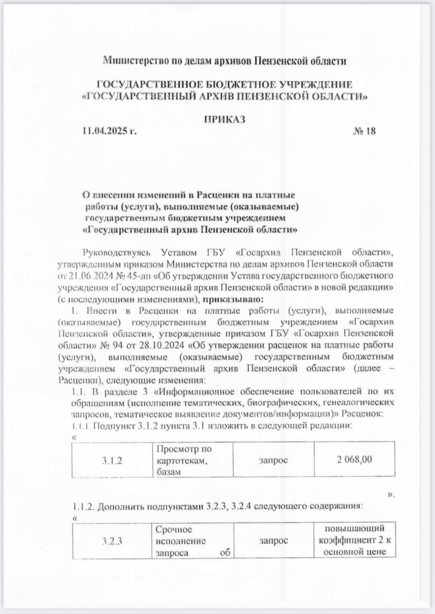 Архивы массово обновляют прайсы, теперь это сделал "Государственный архив Пензенской области" (ГАПО