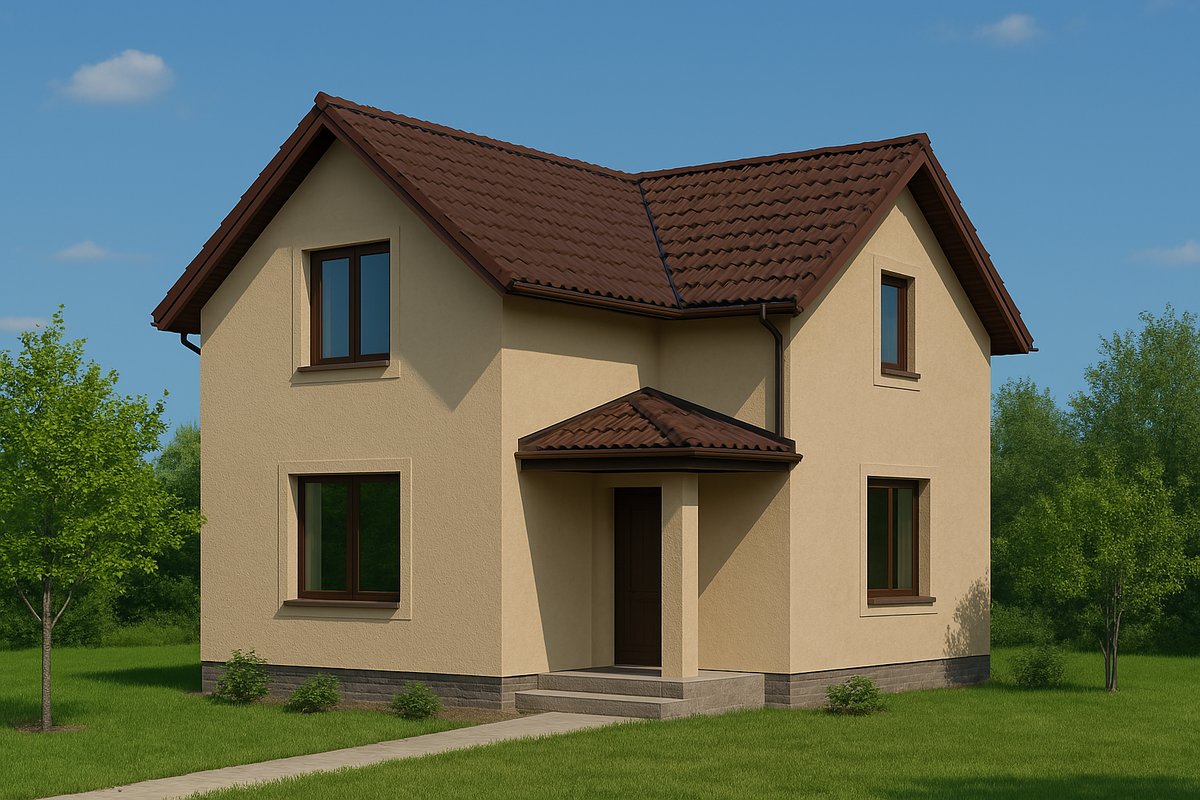 Коричневая крыша — это классика, которая никогда не выходит из моды. Она тёплая, универсальная и отлично сочетается с природными оттенками. Но чтобы фасад смотрелся гармонично, важно правильно подобрать его цвет. Разберём несколько удачных комбинаций на примере визуализаций и определим, какие оттенки действительно работают. Бежевый — беспроигрышный вариант. В сочетании с коричневой крышей он создаёт тёплый, уютный образ. Такой дом впишется как в городскую, так и в загородную среду. Эстетика сдержанная, благородная и долговечная. Почему это работает: оттенки одной теплой гаммы создают гармоничную, мягкую композицию. Если хочется яркости — обратите внимание на тёплый кирпичный или терракотовый фасад. В дуэте с коричневой крышей он создаёт эффект южного, солнечного дома. Отлично подойдёт тем, кто хочет выделиться, но при этом сохранить естественные оттенки. Совет: при таком насыщенном фасаде сделайте окна и элементы декора нейтральными, чтобы не перегрузить образ. Оливковый или травяной о