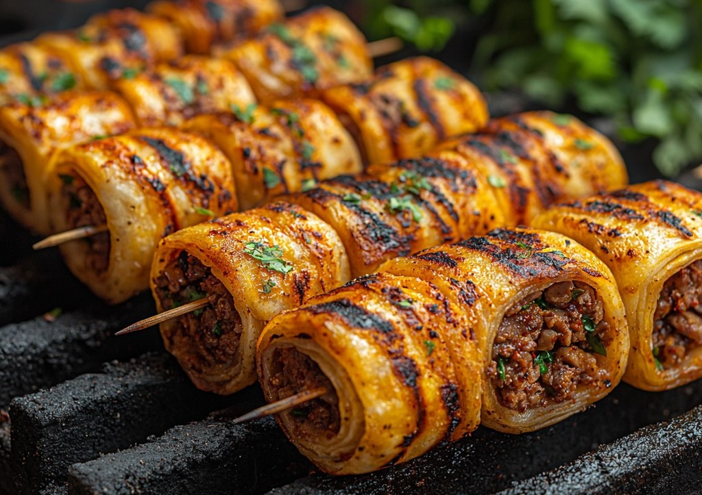 Улитки из лаваша с фаршем на шампурах Ароматное блюдо с дымком для душевных посиделок