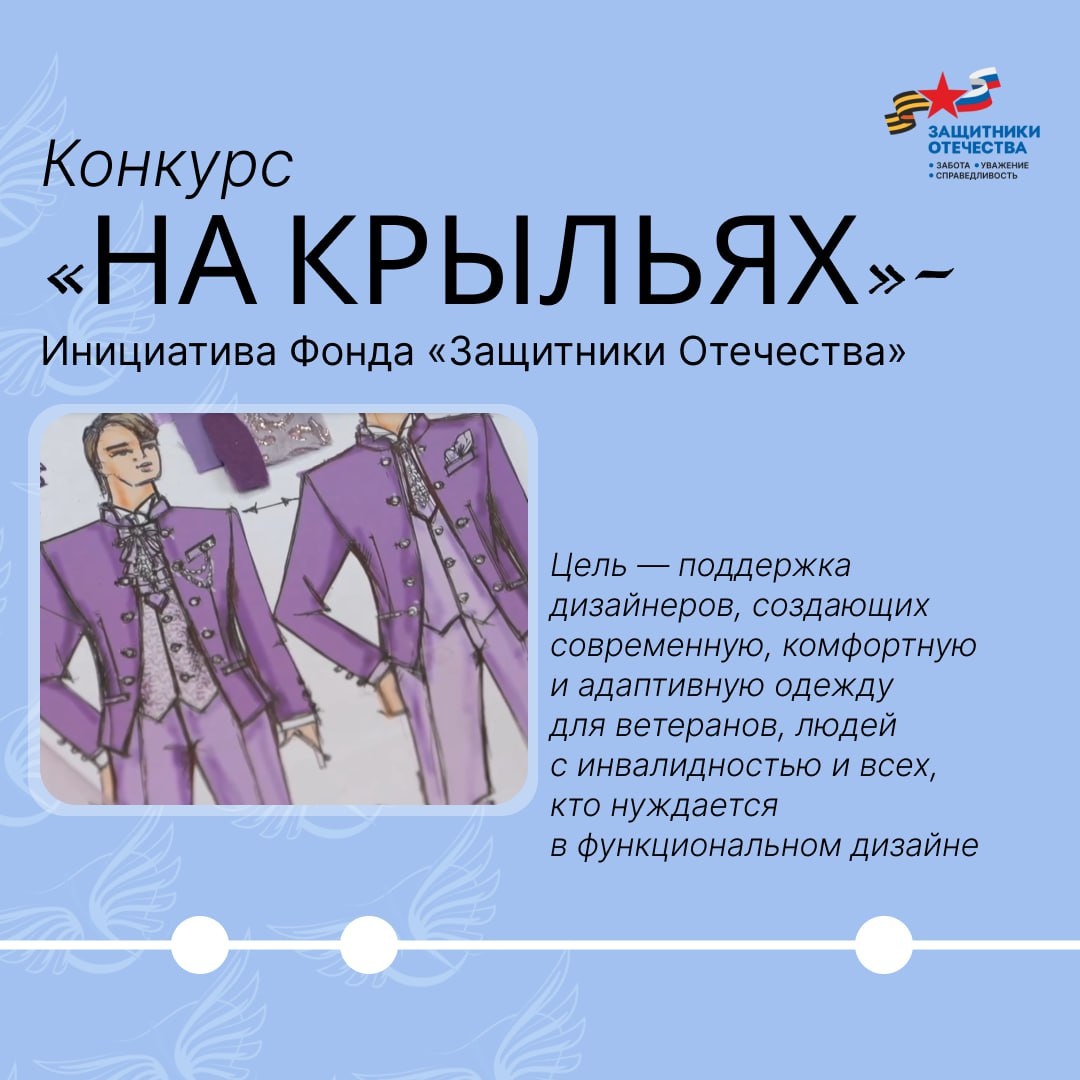 160+ заявок от дизайнеров из 52 регионов России — масштаб Международного конкурса адаптивной одежды «На крыльях». Проект, инициированный фондом «Защитники Отечества» и поддержанный ведущими институтами развития страны, — это не просто конкурс, а шаг к созданию новой индустрии. В июне победители представят свои модели на Петербургском международном экономическом форуме, где пройдёт финальный показ. А лучшие идеи станут частью серийного производства одежды для ветеранов и людей с инвалидностью. «После возвращения из зоны СВО наши герои продолжают вести активную жизнь: занимаются спортом, учатся и работают, становясь опорой семьи. Конечно, для каждого из этих занятий им нужна современная, стильная и комфортная одежда, которая бы учитывала особенности их состояния. Совместно с партнерами мы намерены обеспечить героев такой одеждой», – подчеркнула статс-секретарь – заместитель Министра обороны РФ, председатель фонда «Защитники Отечества» Анна Цивилева. Прием заявок открыт до 14 апреля —
