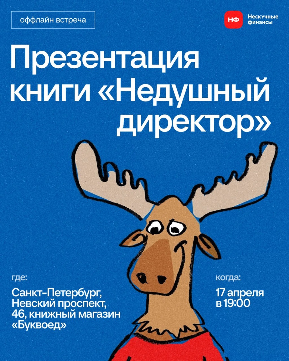 Нескучные — в Петербурге❗️ Александр Афанасьев и Сергей Краснов — авторы книги «Недушный директор» — приезжают в СПБ! ВЖИВУЮ! ЛИЧНО! И только на один вечер 🔜 ➡️ Если вы руководитель и устали от выгорания, бесконечного контроля и спасательства — приходите на встречу. Это не просто презентация книги. Это шанс пообщаться лично, задать вопросы, получить автограф и вдохновиться. Когда еще такое повторится? Встречаемся 17 апреля в 19:00 в книжном магазине Буквоед (Невский проспект, 46). Питер, вы готовы? Мы — да. Ждем вас! 💙