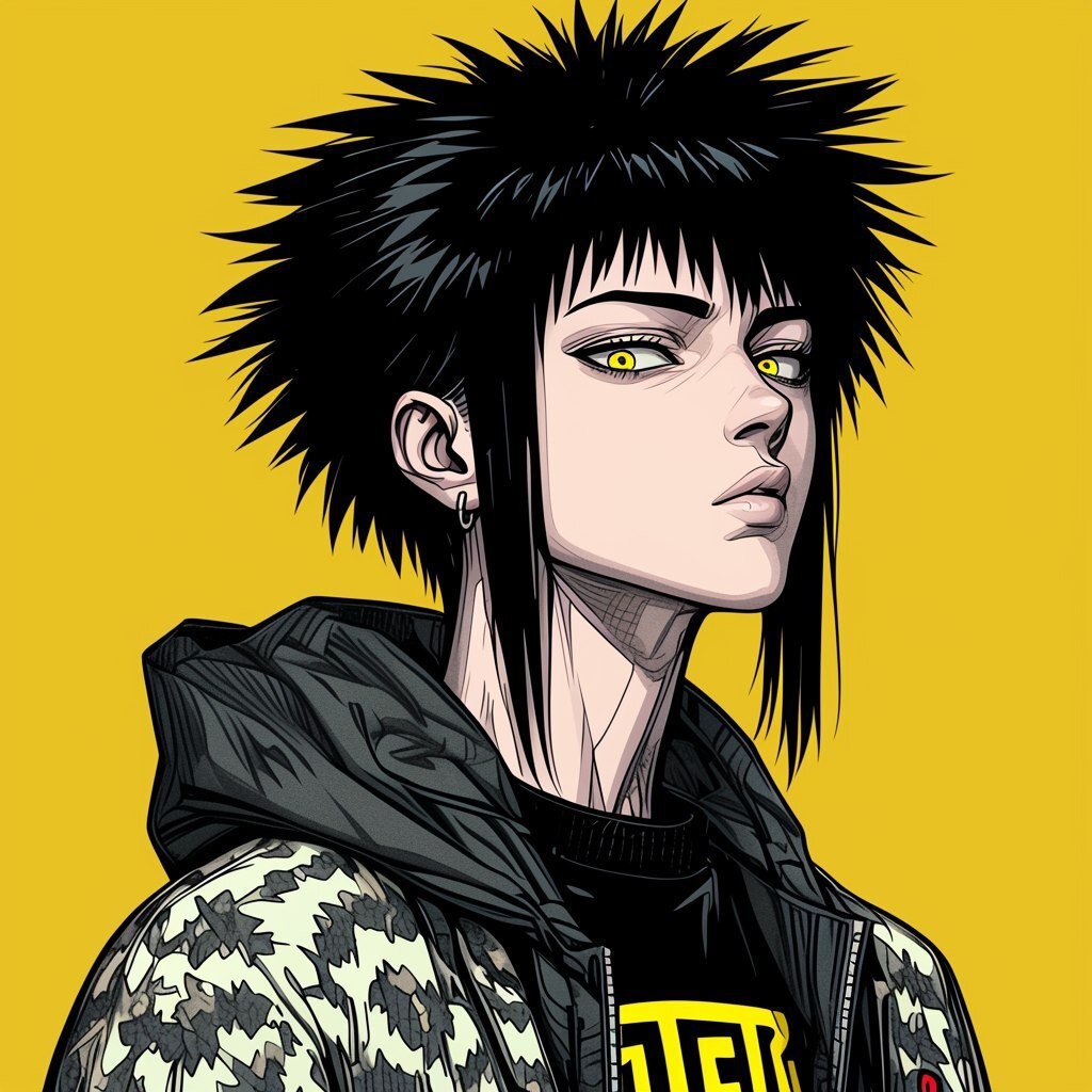 Создано на основе запроса: Profile three-quarter pose female teenager, colorful horror manga style, messy hair with neon teal and dark purple streaks, piercing golden eyes, wearing a dark grey haori with vibrant pink and white patterns over a hoodie, solid muted orange background, ultra-detailed ink lines, high contrast --- Автоперевод: Профиль трех четвертой позы подростка, красочный манговый стиль ужасов, грязные волосы с неоновым бирюзом и темно-фиолетовые полосы, пронзительные золотые глаза, носящие темно-серые гаори с яркими розовыми и белыми узорами над капюшоном, сплошным приглушенным оранжевым фоном, ультра-полудольными чернилами, высоким контрастом. Круто выглядит? 🤔 https://dzen.ru/id/65c0c65c86e4f837c27b24d7 #ИИ #AI #нейросеть #midjourney #art