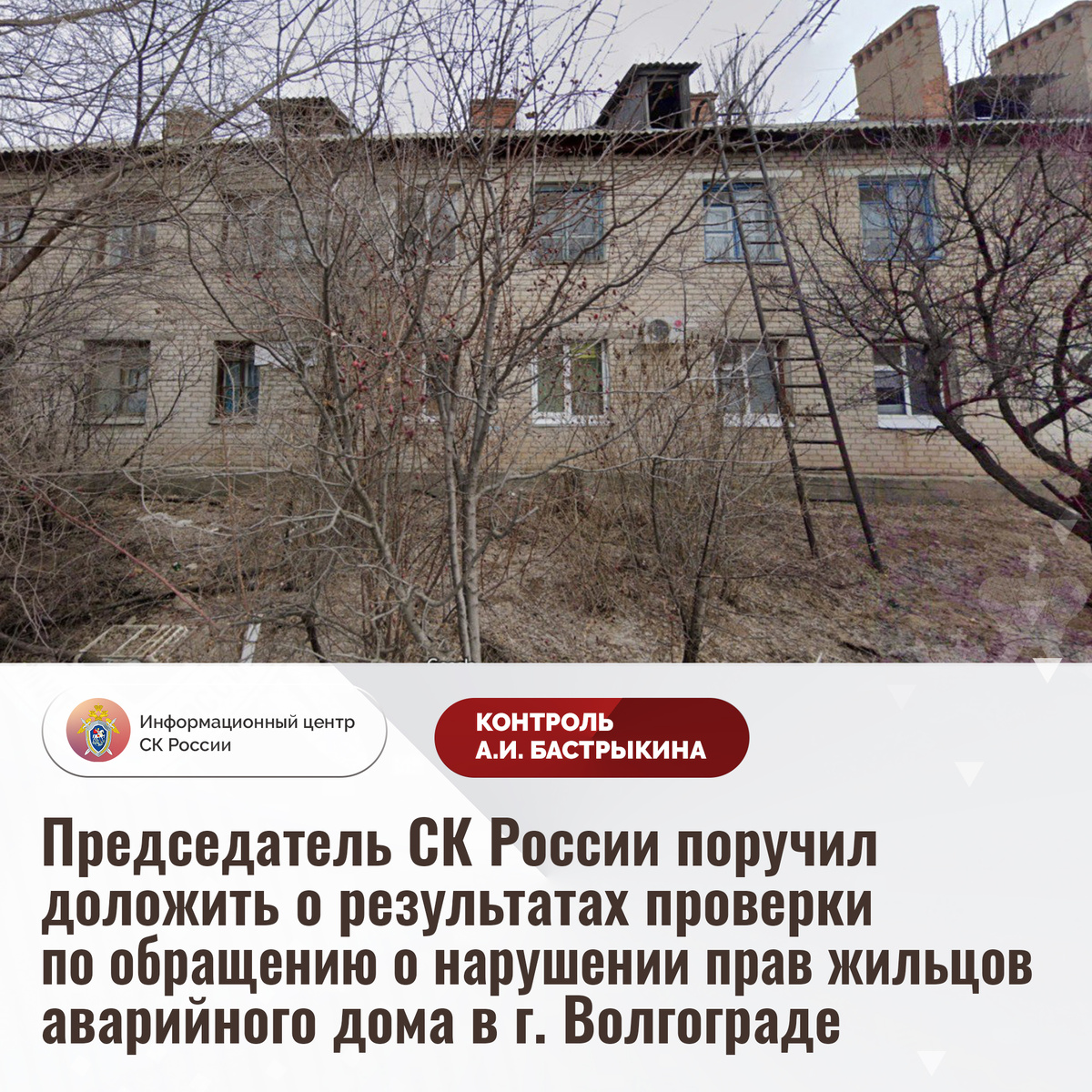 Председатель СК России поручил доложить о результатах проверки по обращению о нарушении прав жильцов аварийного дома в г. Волгограде
