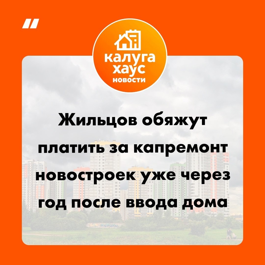 ➤В многоквартирных домах, установлено дорогостоящее оборудование и использованы передовые материалы. Эти элементы начинают изнашиваться сразу после сдачи дома в эксплуатацию. Поэтому, по мнению Минстроя, сроки выплат на капитальный ремонт должны быть максимально приближены к периоду использования здания. #калугахаус_новости #калугахаус