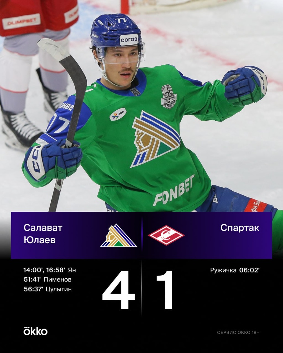 🏆 Открыли второй раунд Кубка Гагарина. Уверенная победа «Салавата» над «Спартаком» дома.