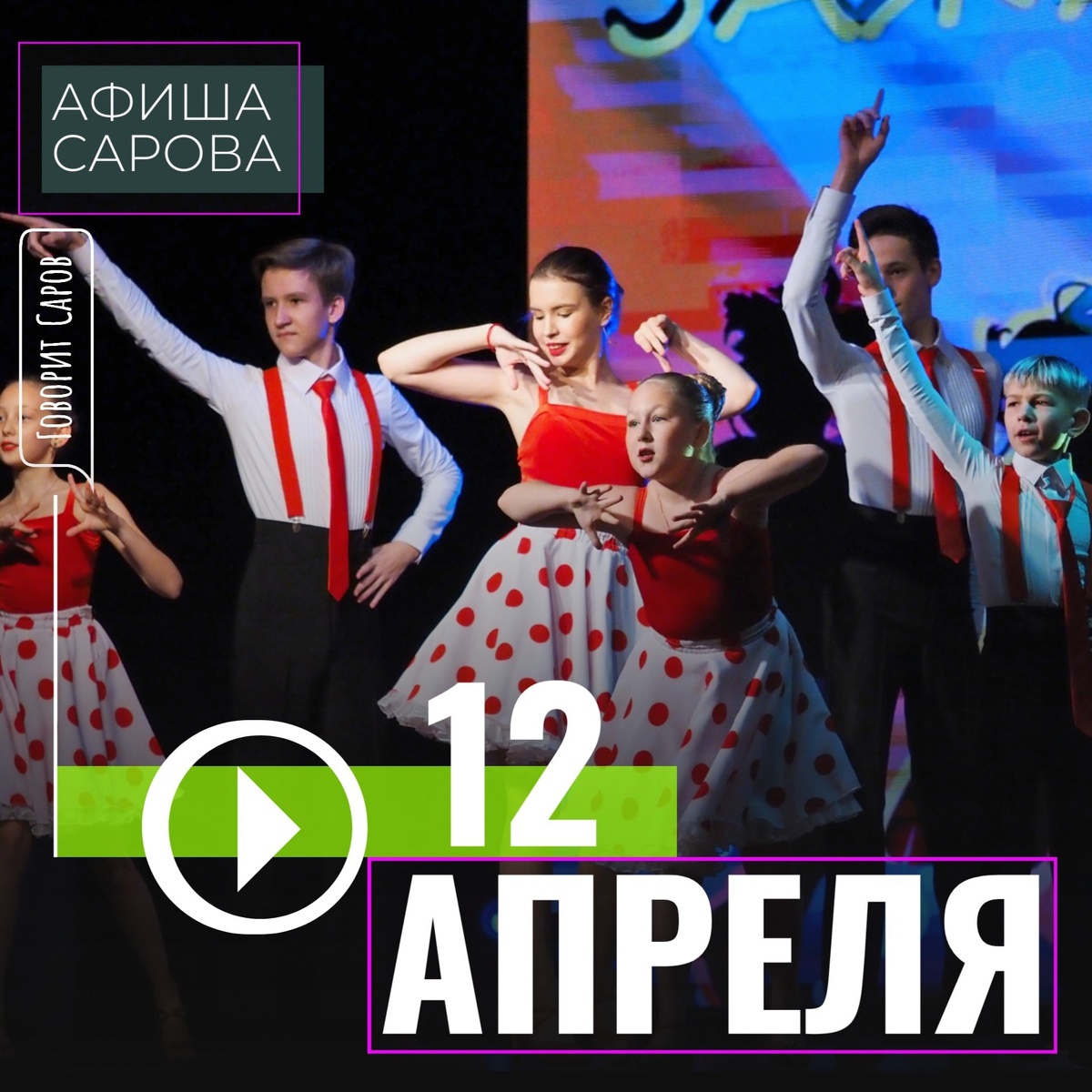 ↗ ЧТО ГДЕ ПРОИСХОДИТ В САРОВЕ 12 АПРЕЛЯ 🧸Театр кукол «Кузнечик» (ЦКР на ул.Менделеева, д.50а, тел. 9-83-83, 9-83-82) 11:00, 16:00 П Р Е М Ь Е Р А! «Бр-р-малей», К. Чуковский (Спектакль рекомендован к просмотру детям с 4-х лет) 👫Дом Молодежи (ул. Зернова, д.64, тел.9-82-52, 9-82-59) 16:00 Фестиваль танцевальных коллективов «Престо-2025» 🥅Ледовый дворец (ул. Московская, 5, Саров, тел. 9-49-14) 15:30-18:00 Первенство ПФО по хоккею среди детско-юношеских команд ХК «Саров-13»-ХК «Гвоздика-13» (г.Ижевск) 20:00-21:30 Массовое катание на коньках 🏛ЦКиД РФЯЦ- ВНИИЭФ (площадь Ленина, 11, тел. 3-42-98) 18:00 Концерт "Песни о главном" коллектива эстрадной песни "Апрель" (рук. И.Оськина), 6+ Цена билета:300 руб. 🤺Клуб «Здоровье» ( ул. Силкина, д. 10А, тел. 3-37-26) 16:00 «Открытый космос»- интерактивная программа, посвященная Дню космонавтики- подростки 🏤Дом Учёных ВНИИЭФ (пр Октябрьский, д.34, тел. 3-66-38) 18:00 Концерт фортепианной музыки,…
