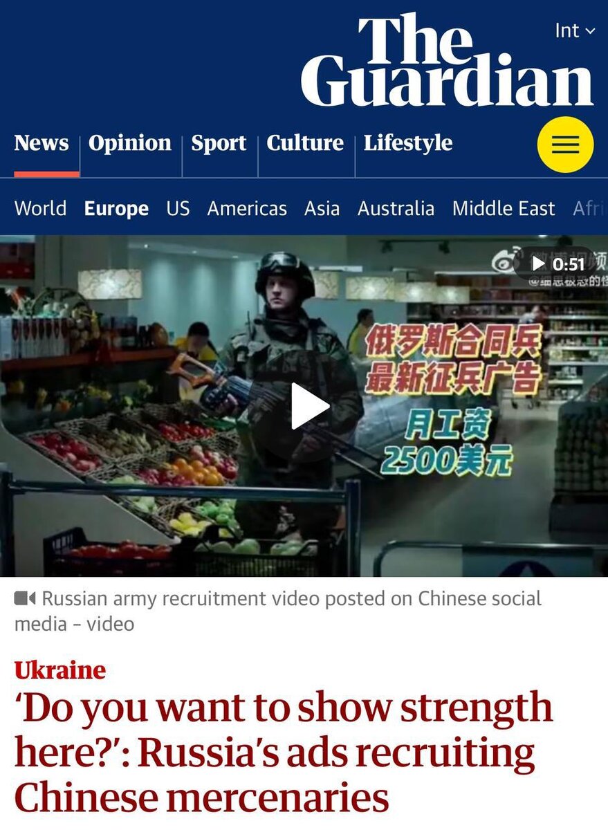 ❗️The Guardian выдала фейк, чтобы обвинить РФ в якобы проведении масштабной кампании по набору китайских наёмников в сети