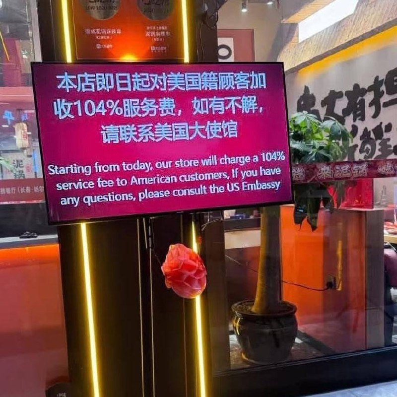 Начиная с сегодняшнего дня наш магазин взимает с американских клиентов комиссию за обслуживание в размере 104%. Если у вас возникнут какие-либо вопросы, обратитесь в посольство США.