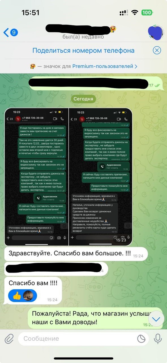 Одна моя знакомая приобрела джинсы. Все было прекрасно… первые 5 дней. Затем джинсы растянулись до совершенно непотребного вида. Связалась с магазином, сотрудники пожали плечами и деньги возвращать отказались, сославшись на то, что это особенность ткани и ей надо постирать их, отпарить и, может быть, (но это неточно) джинсы вернуться в первоначальный вид. Знакомая написала мне и попросила прокомментировать ситуацию. Я проконсультировала ее, рассказав о сроках на предъявление претензии на товары, которые не относятся к сезонным и не имеют оговоренного гарантийного срока, а также о том, что магазин, если не хочет сразу вернуть деньги, должен, получив претензию покупателя, отправить товар на экспертизу в независимую экспертную организацию. Посоветовала ей написать претензию в свободной форме и отнести в магазин. Сегодня получила от нее скриншоты с перепиской и ответом магазина. Руководство магазина не стало рисковать еще большими расходами и решило вернуть моей знакомой деньги за джи