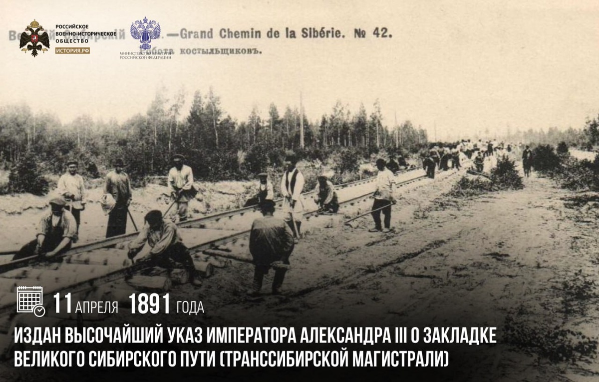 11 апреля 1891 года был издан указ Александра III о закладке Великого сибирского пути (Транссиба).