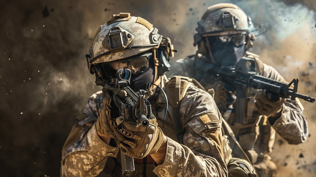 Создано на основе запроса: cinematic still of two Call of Duty Soldiers in a stand off, full body, hyper realistic, shot by canon 5 R.High resolution, Photorealistic lighting, Super resolution, Megapixel, Pro Photo, depth of field, 32k, ultra high definition