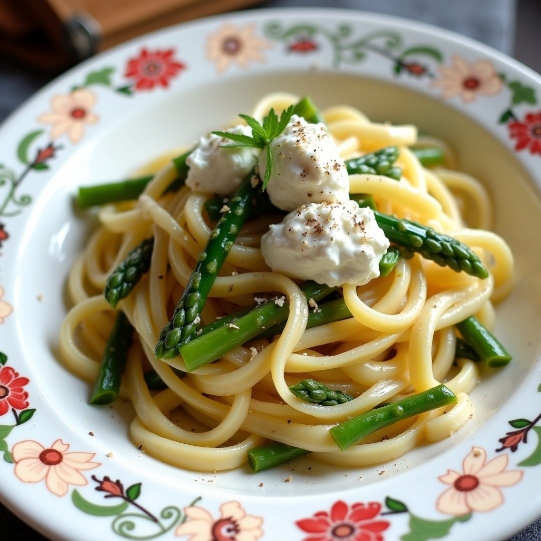 Феттучине со спаржей и цукини Ингредиенты⤵️ 🔸Феттучине — 200 г 🔸Спаржа зеленая — 150 г 🔸Цукини — 1 шт. 🔸Козий сыр — 70 г 🔸Чеснок — 2 зубчика 🔸Оливковое масло — 3 ст.л. 🔸Лимонный сок — 1 ст.л. 🔸Соль, перец — 1 щепотка 🔸Тимьян — 1 щепотка Приготовление🧀 1. Пасту отварить в подсоленной воде до «аль денте». 2. Спаржу и цукини нарезать диагональными ломтиками. Обжарить на оливковом масле с чесноком 4-5 минут. 3. Добавить к овощам готовую пасту, лимонный сок, тимьян, соль и перец. Аккуратно перемешать. 4. Подавать, посыпав раскрошенным козьим сыром. 5. Для пикантности можно добавить цедру лимона и щепотку чили. Рецепт дня #паста #феттучине #макароны #спаржа #цукини #козий_сыр #ужин