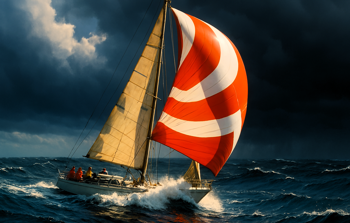 Судьи поднимают флаг, и яхты устремляются вперёд. Fastnet начинает движение — с привычной энергией, азартом и надеждой на успех. На горизонте не видно ни облачка.