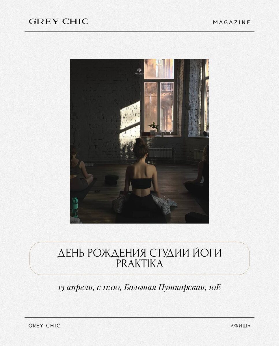 Куда отправимся на выходных: подготовили новую подборку мероприятий 🔴День рождения студии йоги Praktika В программе — практика активного дыхания, китайская чайная церемония, работа с Метафорическими Ассоциативными Картами, женские даосские практики, медитация с хрустальными чашами, фуршет, а также презенты от друзей «Практики». Записаться можно по ссылке. 13 апреля, с 11:00 Большая Пушкарская, 10Е 🔴Выставка «13» от «Стрит-арт хранения» и Ruarts В экспозиции представят работы 13 художников «уличной волны», которые обрели признание и при этом сохранили связь с истоками. Посетители увидят живопись, графику, коллажи из старейших галерей Москвы. Подробнее о слотах посещения читайте здесь. С 5 апреля Кожевенная линия, 40Е 🔴Ретроспектива «Кино и мода: искусство быть легендой» В афише — пять картин о знаковых кутюрье, повлиявших на историю моды последних десятилетий. Вы узнаете о жизни и творчестве Ива Сен-Лорана, Вивьен Вествуд, Дриса Ван Нотена и других. Подробности и билеты на сайте