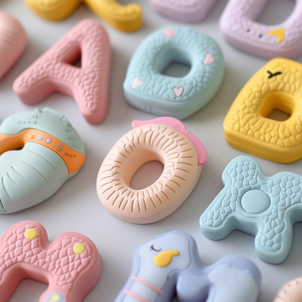 Создано на основе запроса: soft textured baby toys with letters pastel colors white seamless background macro focus
