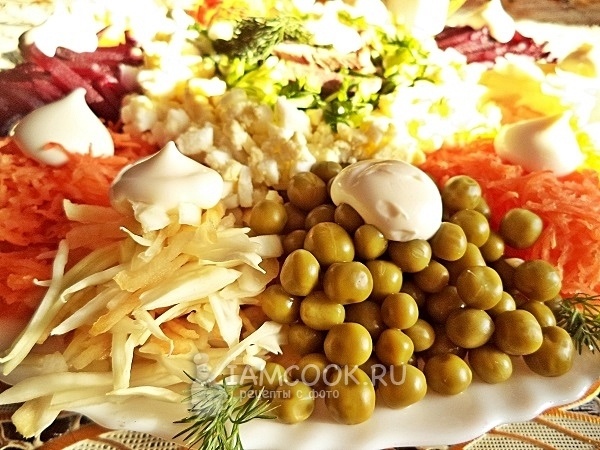 Этот салат всегда был на маминых праздниках. Мы готовим по семейному рецепту – с мясом в центре, как положено