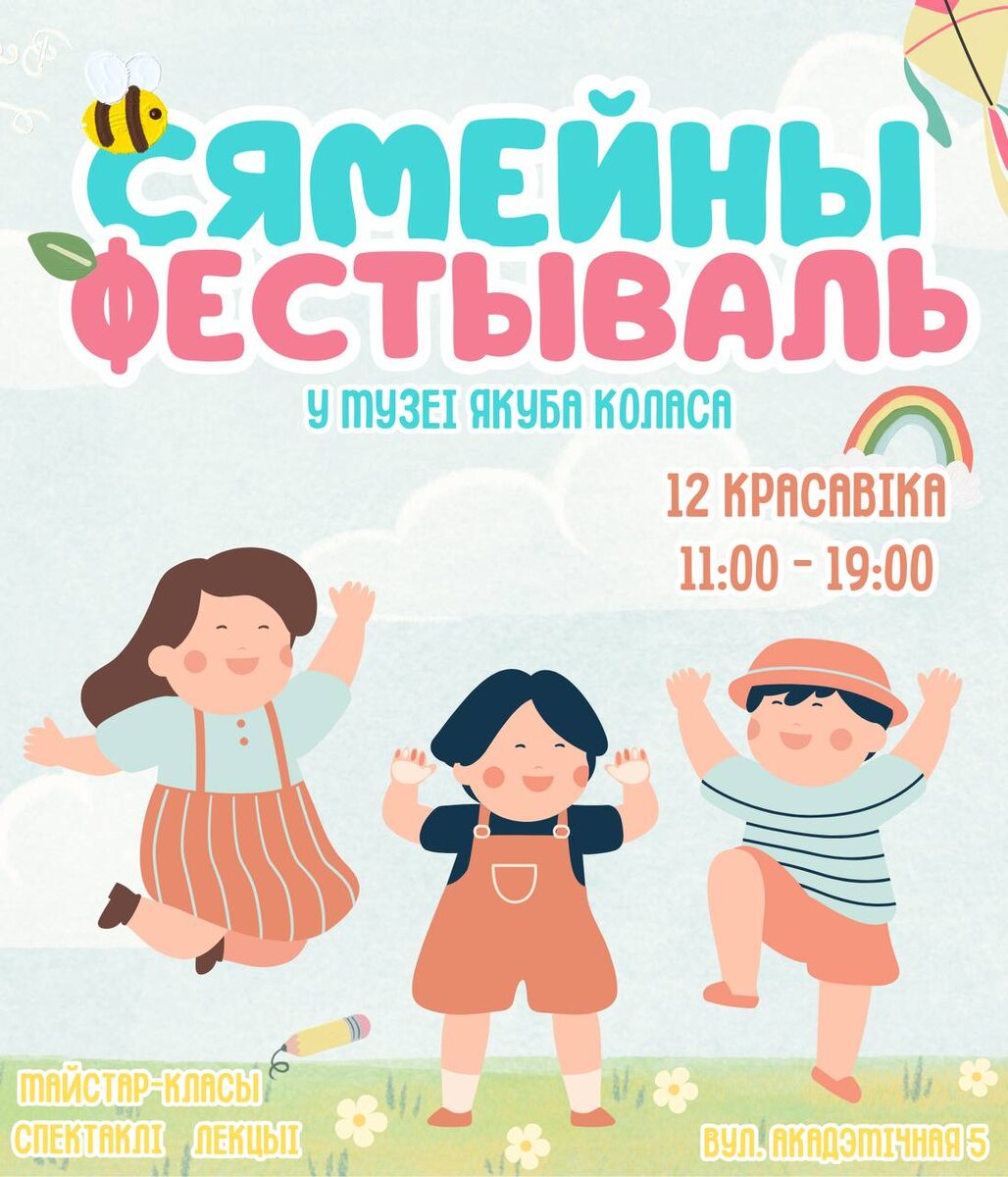 😎 Еще один семейный фестиваль в музее Якуба Коласа. Семейные фестивали в музее Якуба Коласа проходят регулярно. Для гостей здесь организована разнообразная развлекательная и образовательная программа. Для самых маленьких😎 11:00 — интерактивный спектакль «Гигантская груша» от театра «КАКАО» для детей 3-7 лет. 12:00 — мастер-класс для детей и взрослых по изготовлению икон из самозатвердевающей глины Стоимость 30 byn (мама+ребенок), каждый последующий ребенок 20 byn. Спектакль на русском языке. *Количество мест ограничено, необходима предварительная регистрация. Образовательная часть😎 13:00 — детский мастер-класс по этикету питания в Мемориальной столовой Якуба Коласа для детей 8-12 лет Стоимость 15 byn. *Количество мест ограничено, необходима предварительная регистрация. Общая программа фестиваля😎 14:30 — Мастер-класс по театральному мастерству для детей 14:30 — лекция о правилах поведения за столом для взрослых 15:30 — театрализованные истории для детей от современной батлейки “