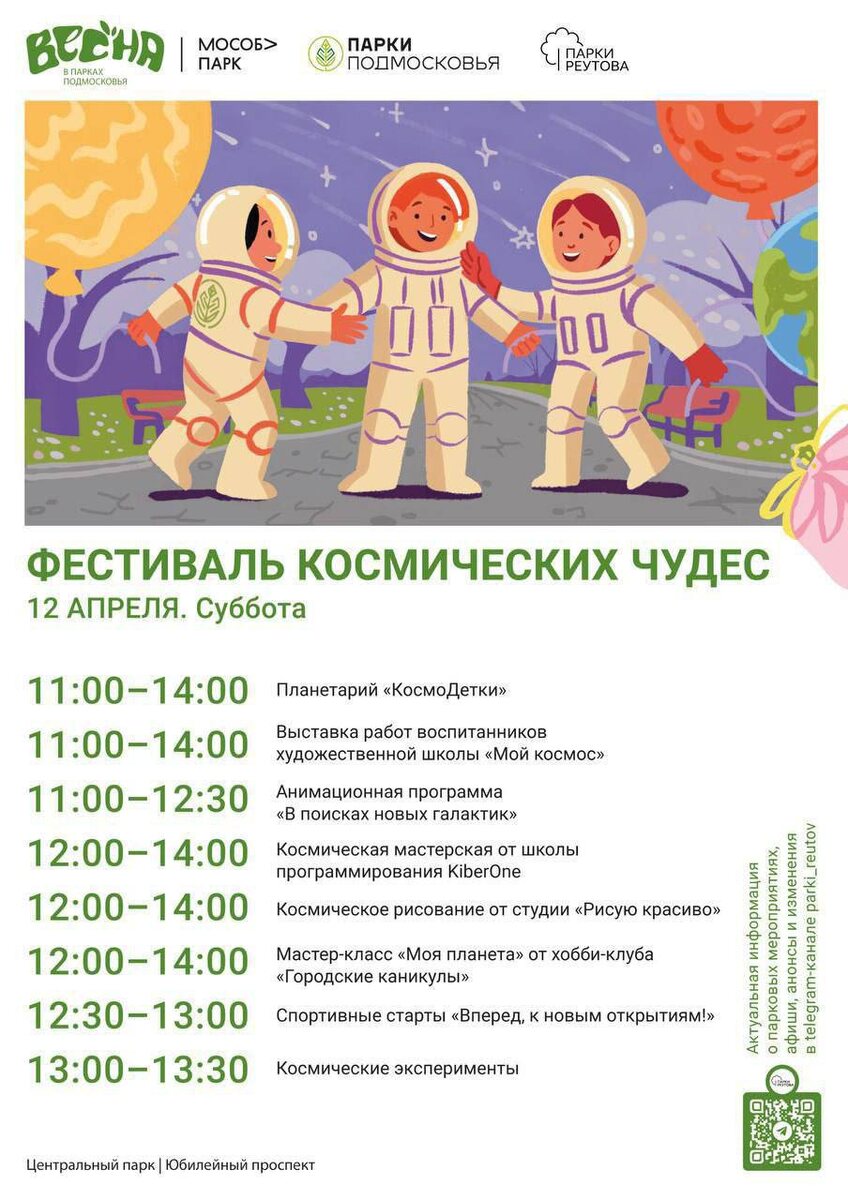 🚀 12 апреля с 11:00 до 14:00 в Центальном парке будут «космическое» веселье ⭐️Анимационная программа и спортивные соревнования ⭐️Планетарий ⭐️Творческие мастер-классы и настоящие космические эксперименты ⚡️ Молния Южного Реутова