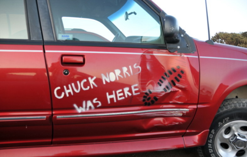 Забавные надписи на автомобилях нередко заставляют пешеходов остановиться, удивляясь находчивости креативного водителя, а на проезжающих машинах улыбаются даже пассажиры, увидев оригинальные выражения из категории особой водительской субкультуры. У пользователей соцсетей появляется возможность поделиться с друзьями очередной, впечатляющей находкой, оставленной юмористом на своей машине. Эта подборка приглашает улыбнуться над самоиронией или находчивостью авторов надписей. №1. В переводе надпись означает, что Чак Норрис оставил ботинком след на дверце авто. Впечатлительный отпечаток, но кто бы не вписался в бок, ремонтировать машину все-таки придется. №2. Машина волнуется за судьбу хозяина, считает, что только в нежных женских руках хорошее техническое состояние авто буде долговечным. Почему от имени транспортного средства выступает, хоть и прикольный, но кот, остается загадкой. №3. Автомобилистке мало было сообщения в виде приклеенного восклицательного знака, который предупреждает, ч