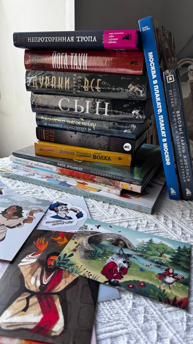 Стопка первого дня:) часть из них для детского книжного клуба о книгах и книгопечатании. В идеале — я должна это прочитать к фестивалю в июне на Красной площади, но у меня непрочитанные книги издательства Синдбад с прошлой весенней ярмарки и зимы !