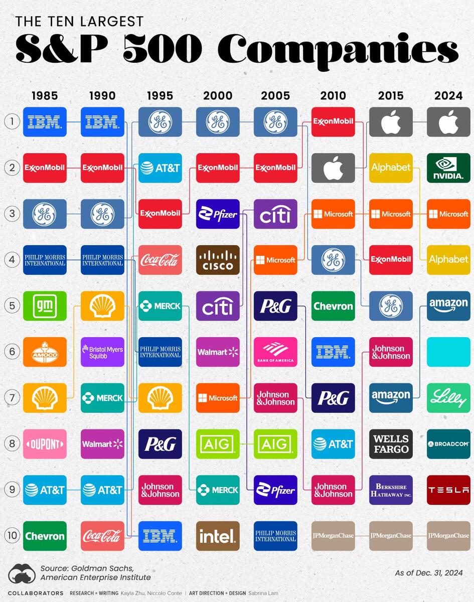 Крупнейшие компании S&P 500 (1985-2024)