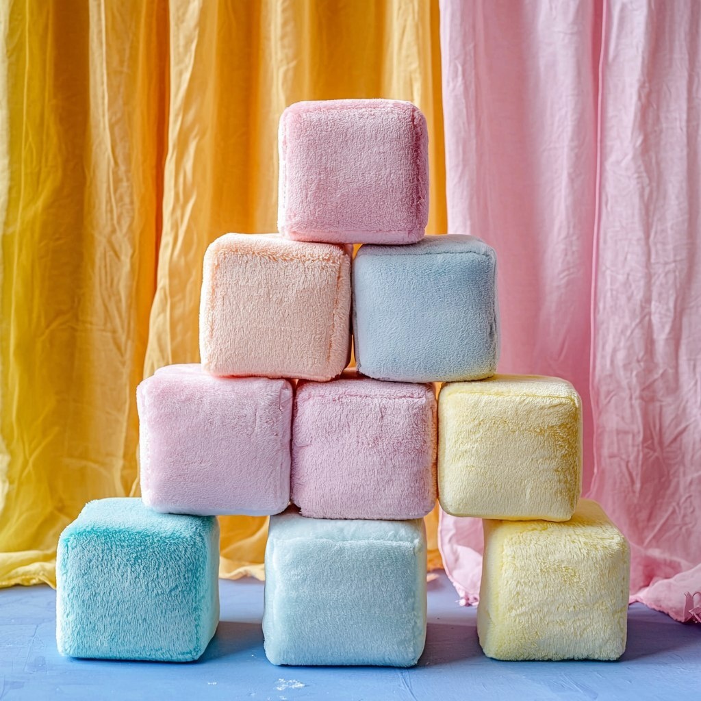 Создано на основе запроса: studio photo of pastel-colored plush blocks for preschoolers soft textures minimalist backdrop