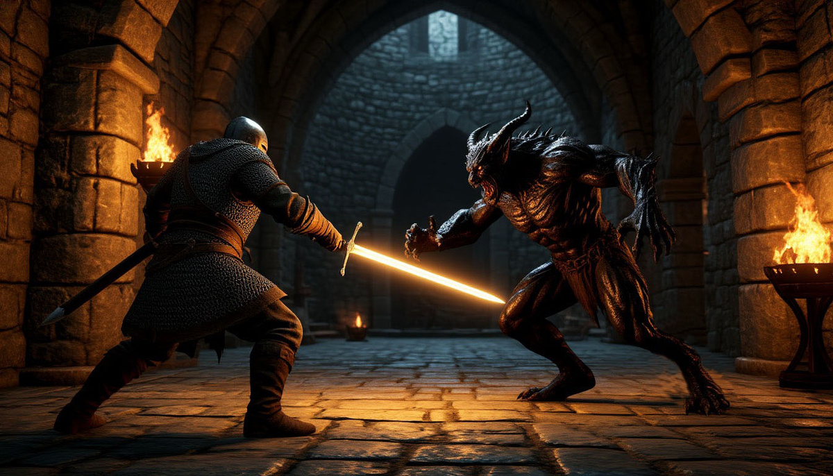 Два клинка встретились в воздухе с яркой вспышкой, разбив один из них на черные брызги. Демона откинуло ударом, и он проехался по полу назад, оставляя на камнях борозды от когтистой лапы.