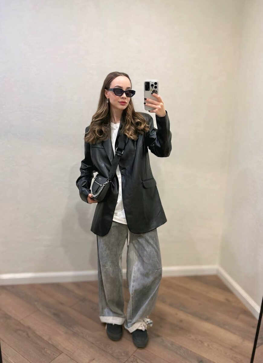 Пиджак из эко-кожи оверсайз кроя Состав: эко-кожа Состояние: новой вещи Размер от S до L Стоимость: 2300 руб Связь со мной @AngelinaJolinee #ЛюдиВещиНаличие