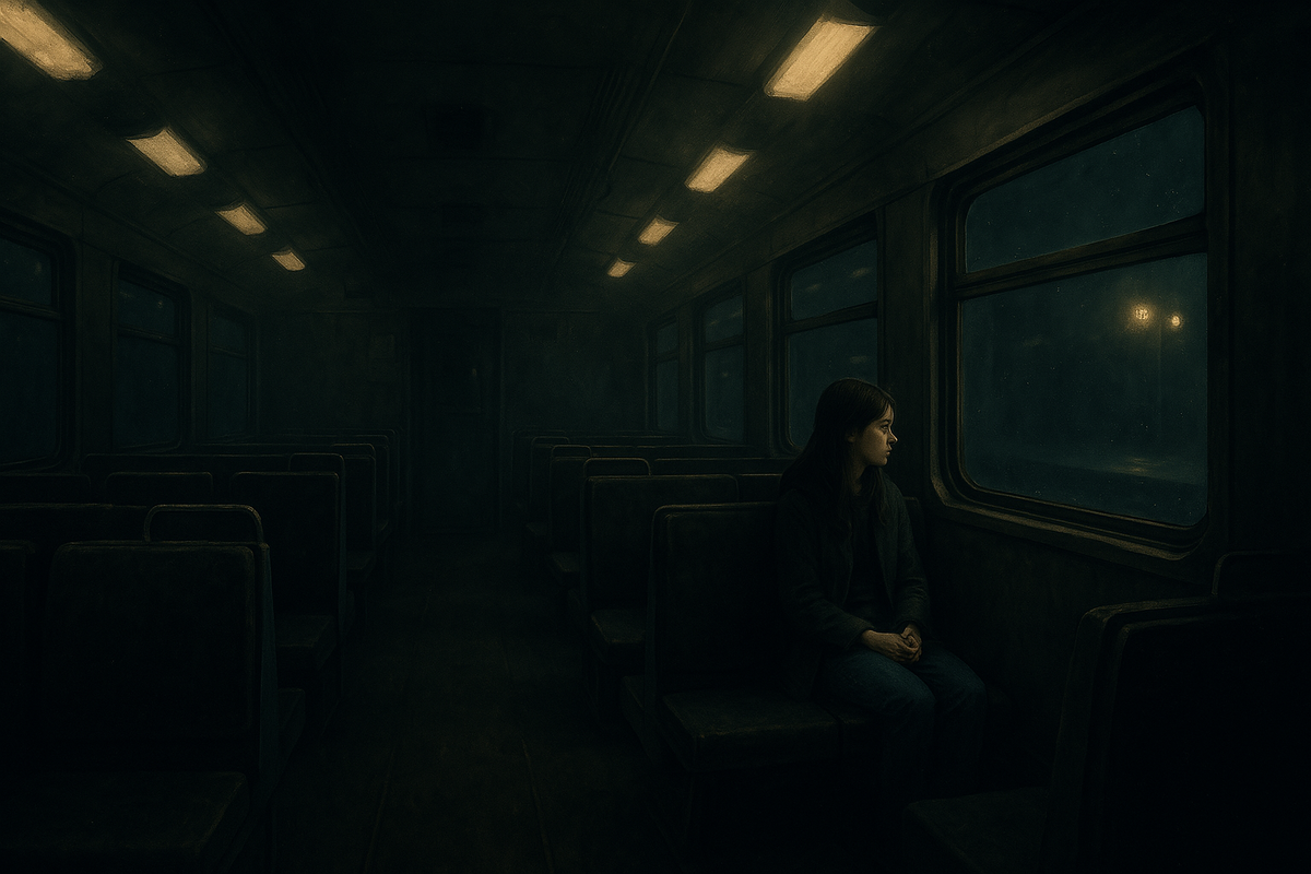 Она сняла наушники и прислушалась. Поезд ехал. Но ехал… слишком тихо. Без привычного грохота, без объявлений о станциях, без голоса из динамика. Было ощущение, будто она едет внутри замкнутого мира.