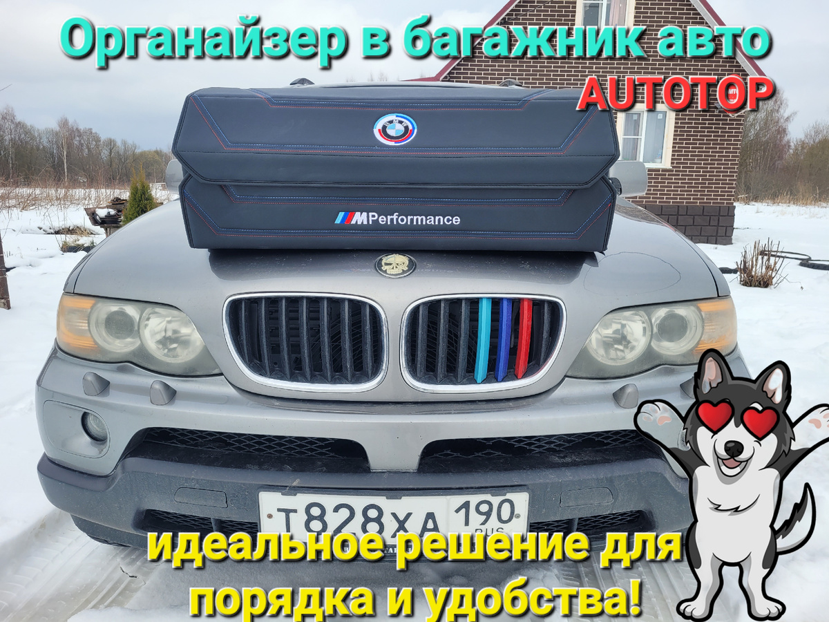 Всем доброго времени суток. А у вас порядок в багажнике ? ) У меня вот не всегда . Но теперь я приобрёл- Органайзер в багажник c логотипом БМВ - Autotop Огромный органайзер 90 см в длинну , теперь уж точно в него поместится все .) Эта сумка в багажник автомобиля выполнена из премиальной экокожи черного цветa, с вышивкой юбилейной эмблемы BMW, а фирменный шильд ///M Performance вышит на корпусе органайзера шелковой нитью. Что придает органайзеру особую изысканность. Он идеально подходит для хранения инструментов. Прочный каркас из композитного кожкартона делает органайзер стойким к различным химическим веществам, таким как моторное масло, незамерзайка, что позволяет использовать его в любых условиях без опасений за его состояние. Ящик в багажник легко очищается, не впитывает влагу и обладает износостойким внутренним слоем из файбертекса, что гарантирует долговечность эксплуатации. Сборка органайзера автомобильного занимает всего несколько минут, а липучки на дне и задней стенке о