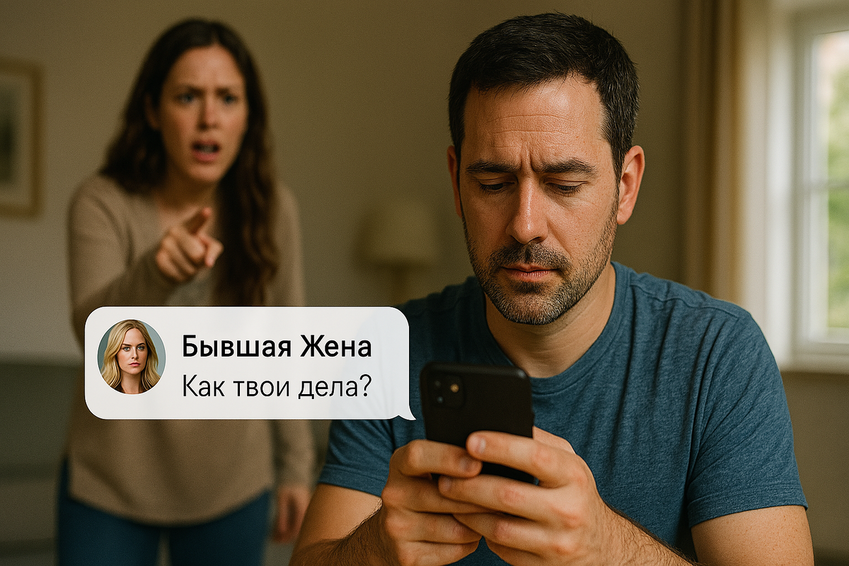Но есть одна тень, которая постоянно маячит на фоне — его бывшая жена. Он то пишет ей, то звонит, то помогает "по привычке".